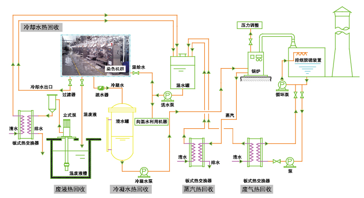 合理、有效的利用冷却用水,蒸汽冷凝水,污水排液,锅炉热气等热能的回收,对工厂整体的节能做出贡献!使用热回收系统回收的热水可以实现以下好处!